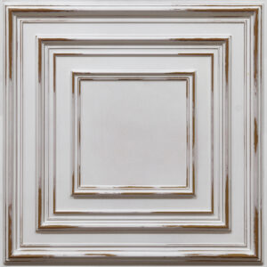 Distressed Silver is a radiant take on layered geometry, combining a strong gold hue with clean framing. Perfect for bold ceiling applications in luxury or Banquet Hall interiors.