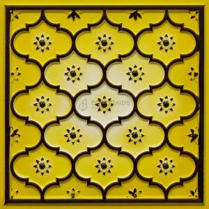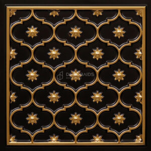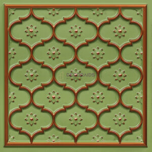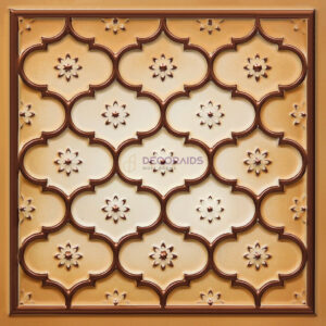 This panel features an intricate lattice design combined with small floral motifs, creating a rich and decorative surface. The repeating pattern adds depth and symmetry while maintaining a traditional aesthetic. Ideal for living rooms, temples, hotels, and feature walls, it brings elegance, texture, and a timeless architectural charm to interiors.