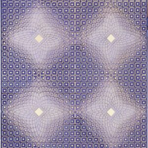 A woven geometric network with repeating curves and centered diamond accents.